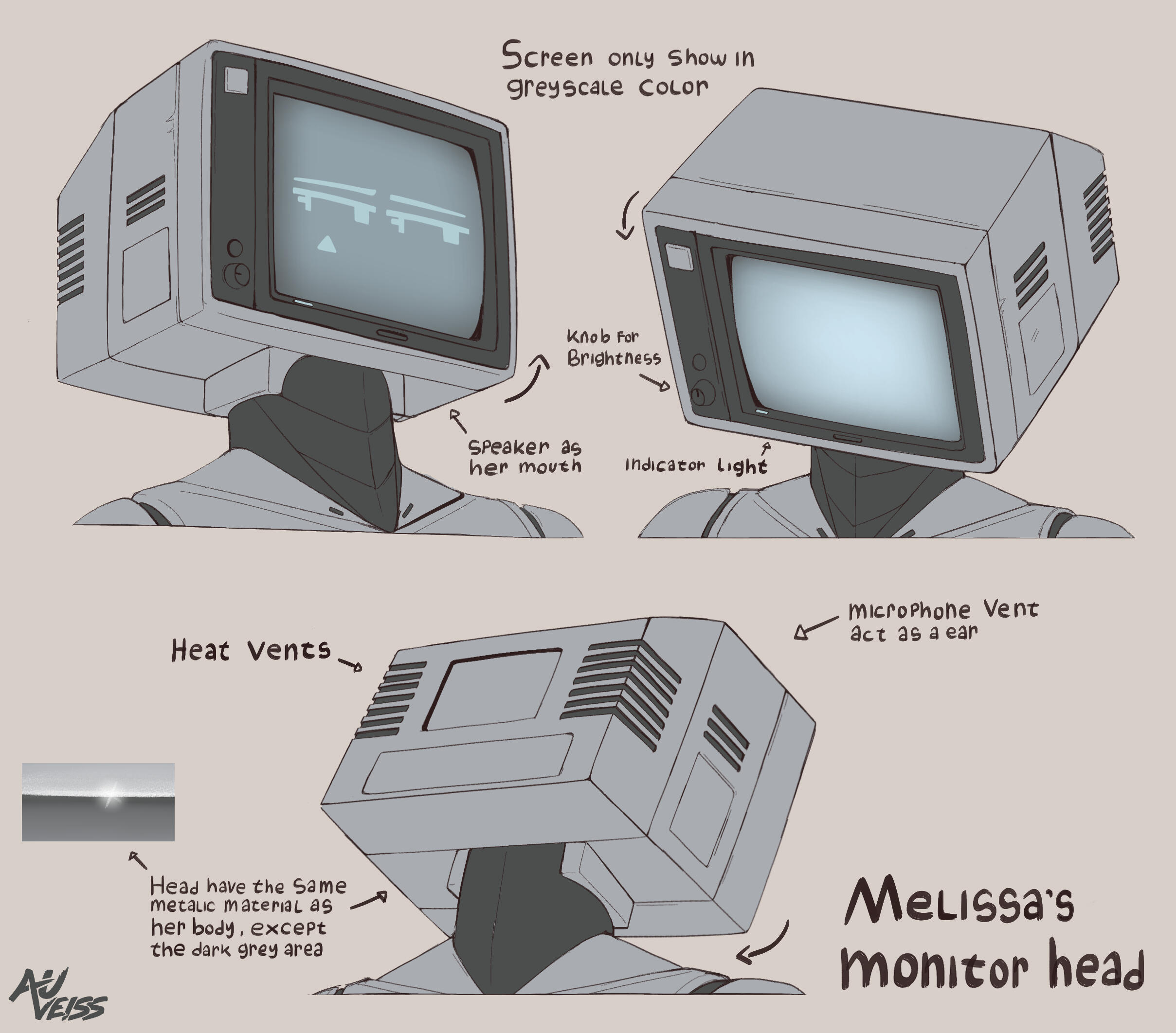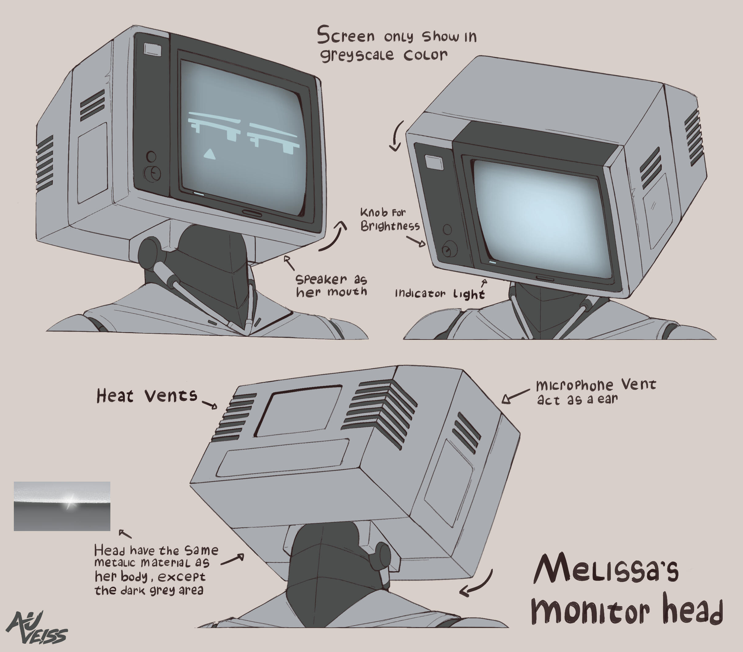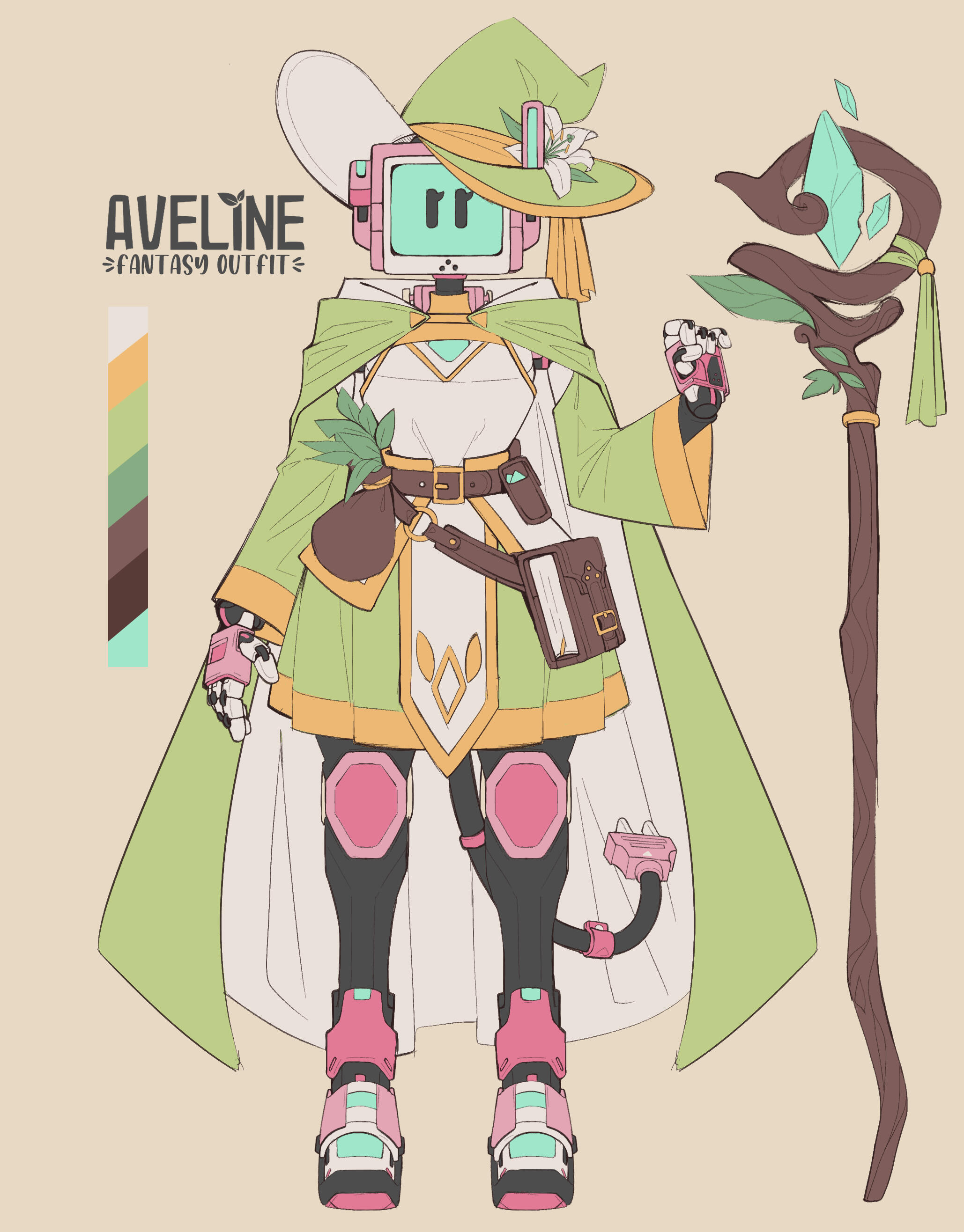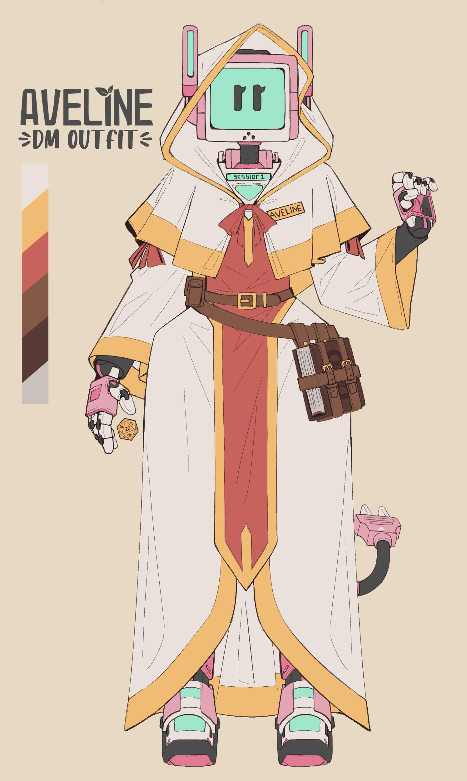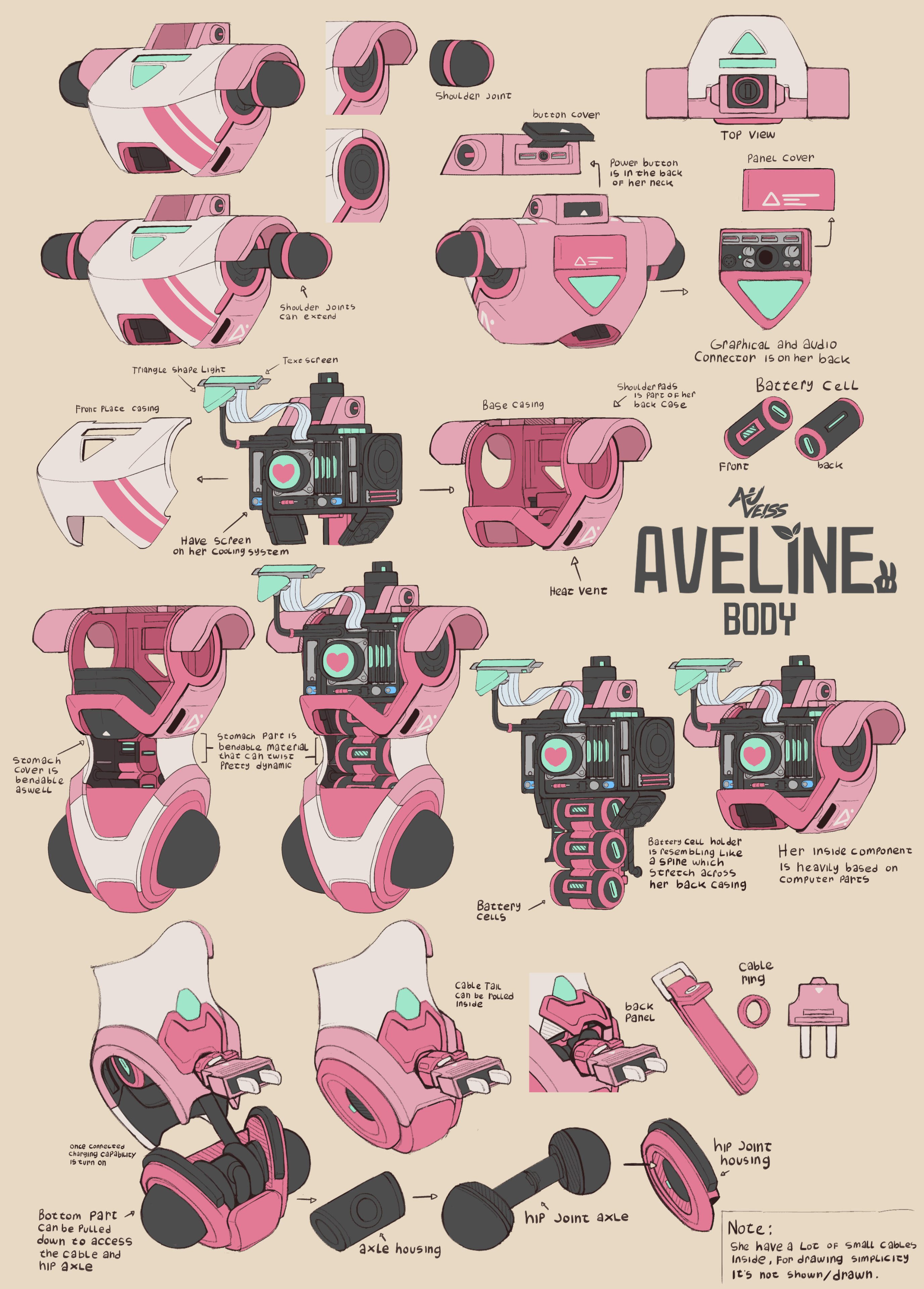 Aveline or Vel for short, is a multimedia robot that work at a boardgame cafe/hobby shop named "The Hero's Board". Her main function is to accompany customer on how to play board game and other waiter tasks.